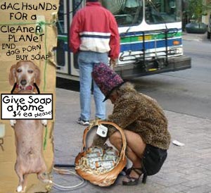 2002-Leo begging again at Congress and 6th St. in downtown Austin.